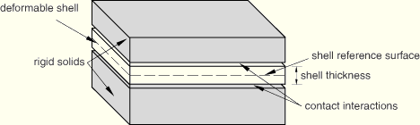 | Abaqus/CAE Usage: | Interaction module: interaction editor: Sliding formulation: Small sliding or Finite sliding, Discretization method: Surface to surface or Node to surface, toggle on Exclude shell/membrane element thickness |